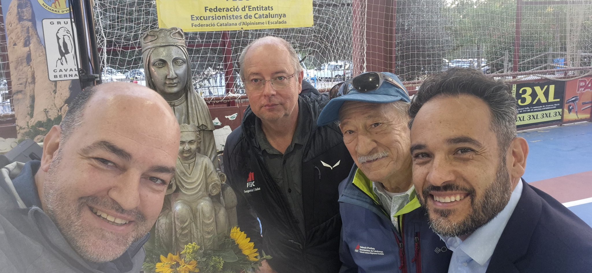 El membre d’honor de la FEEC i cavallista, Jordi Pons, va participar també d’aquesta diada, acompanyat del responsable d’escalada de la FEEC, Pere Gelis i del membre del comitè de seguretat, Josep Maria Silvestre.