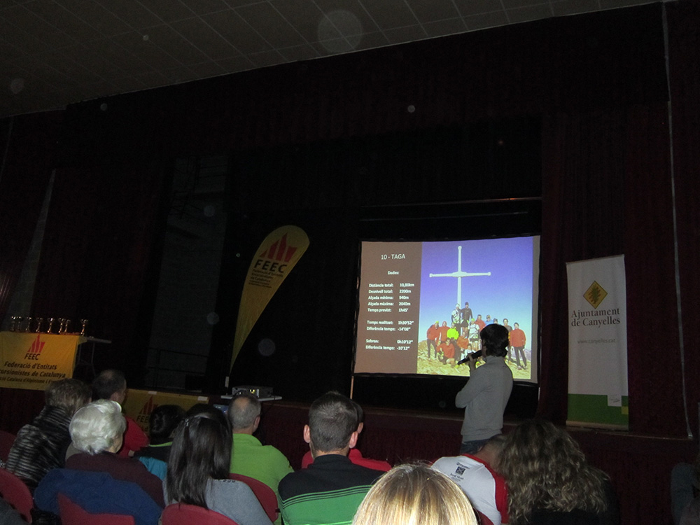 A la tarda, l’entrega de premis va començar amb les paraules de benvinguda de l’alcaldessa de Canyelles, Roga Huguet, i del director tècnic de la FEEC, Marcial Alemán, i una participació de més de 100 persones. Després, el corredor del Tuga Outdoor Team, Pere Marsé, va oferir una conferència sobre el Repte 10/24, un repte que consistia en realitzar els 10 cims més emblemàtics de Catalunya de manera que la suma dels temps de pujar-los i baixar-los no superés les 24 hores. Finalment, i abans de l’entrega dels trofeus, es va projectar un vídeo resum amb imatges de la temporada 2014.