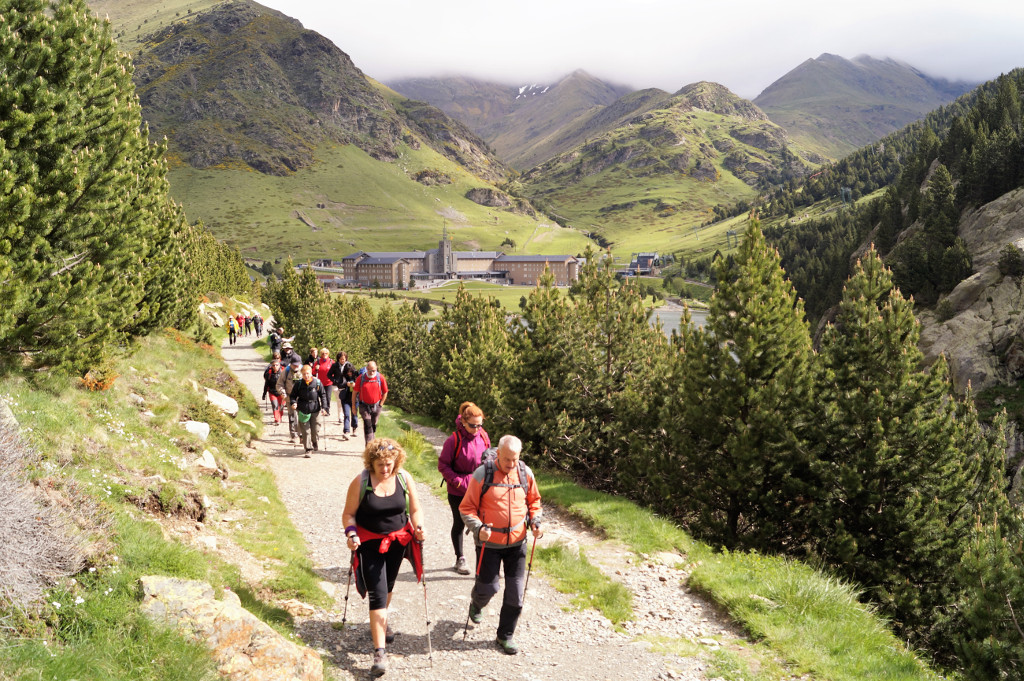 A primera hora de matí del diumenge, una cinquantena d’excursionistes s’han concentrat als voltants del Santuari de la Mare de Déu de Núria i s’han dividit en dos grups per iniciar les dues excursions proposades.