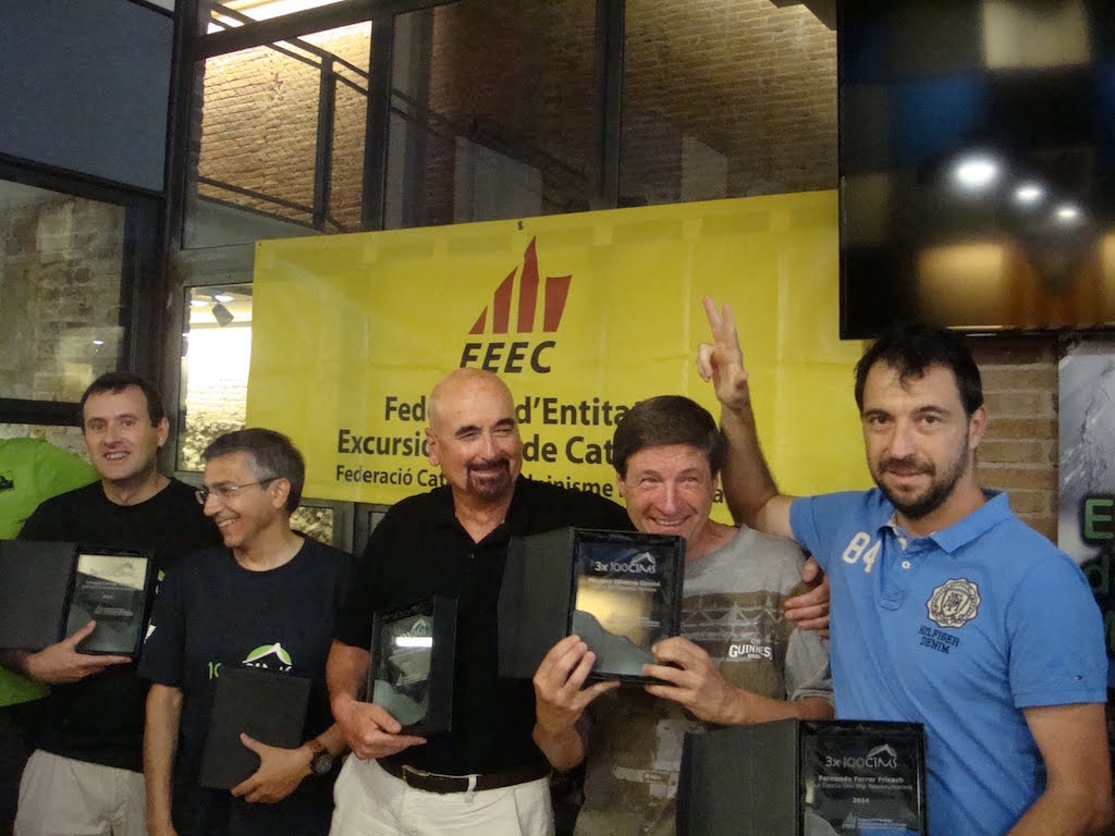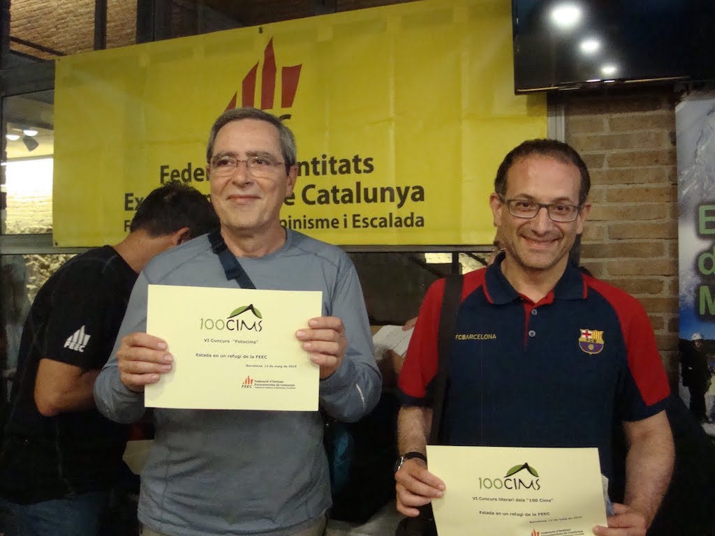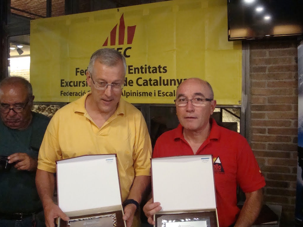 Havent dinat hi va haver l’acte central de la Trobada: el lliurament de premis i reconeixements. Primer, s’hi van repartir els trofeus del 5è Premi FEEC-Canicròs i, a continuació, els premis dels 6è Concurs Literari i del 6è Concurs “Fotocims”. Després de lliurar els reconeixements als set federats que han superat els “3 x 100 Cims” i els quinze que han superat els “2 x 100 Cims”, els protagonistes van ser els 56 federats que han completat el repte dels “100 Cims” el 2014.