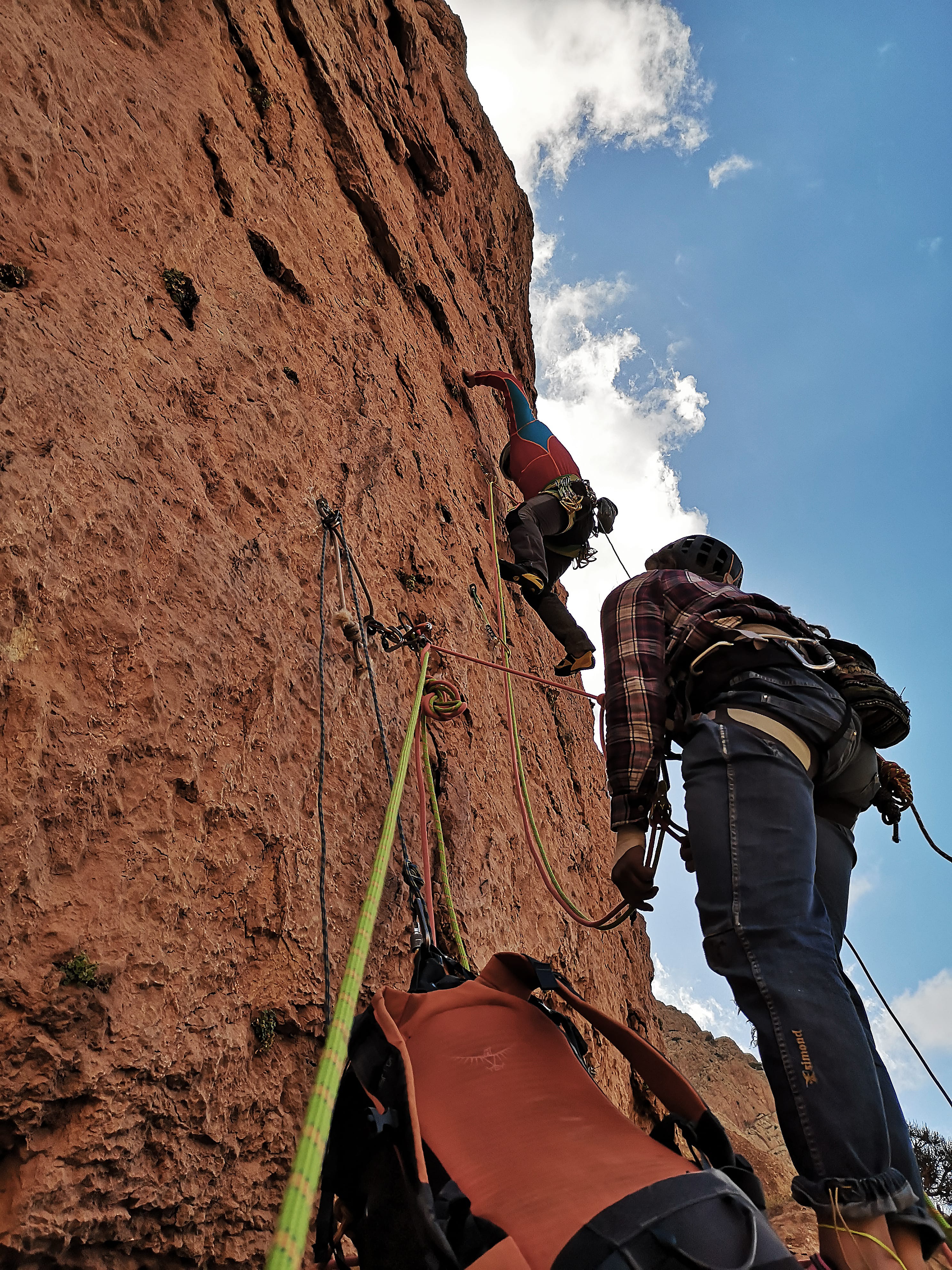 S’han escalat tot tipus d’itineraris, rutes que pugen per plaques plenes de gotes d’aigua a cop d’expansió i traçats més avanturers que aprofiten les debilitats que ofereixen les parets… Els joves han escalat cada dia, aprofitant el bon temps a la regió, a excepció dels 2 últims dies, on l’arribada del fred i la neu va dificultar l’activitat.
