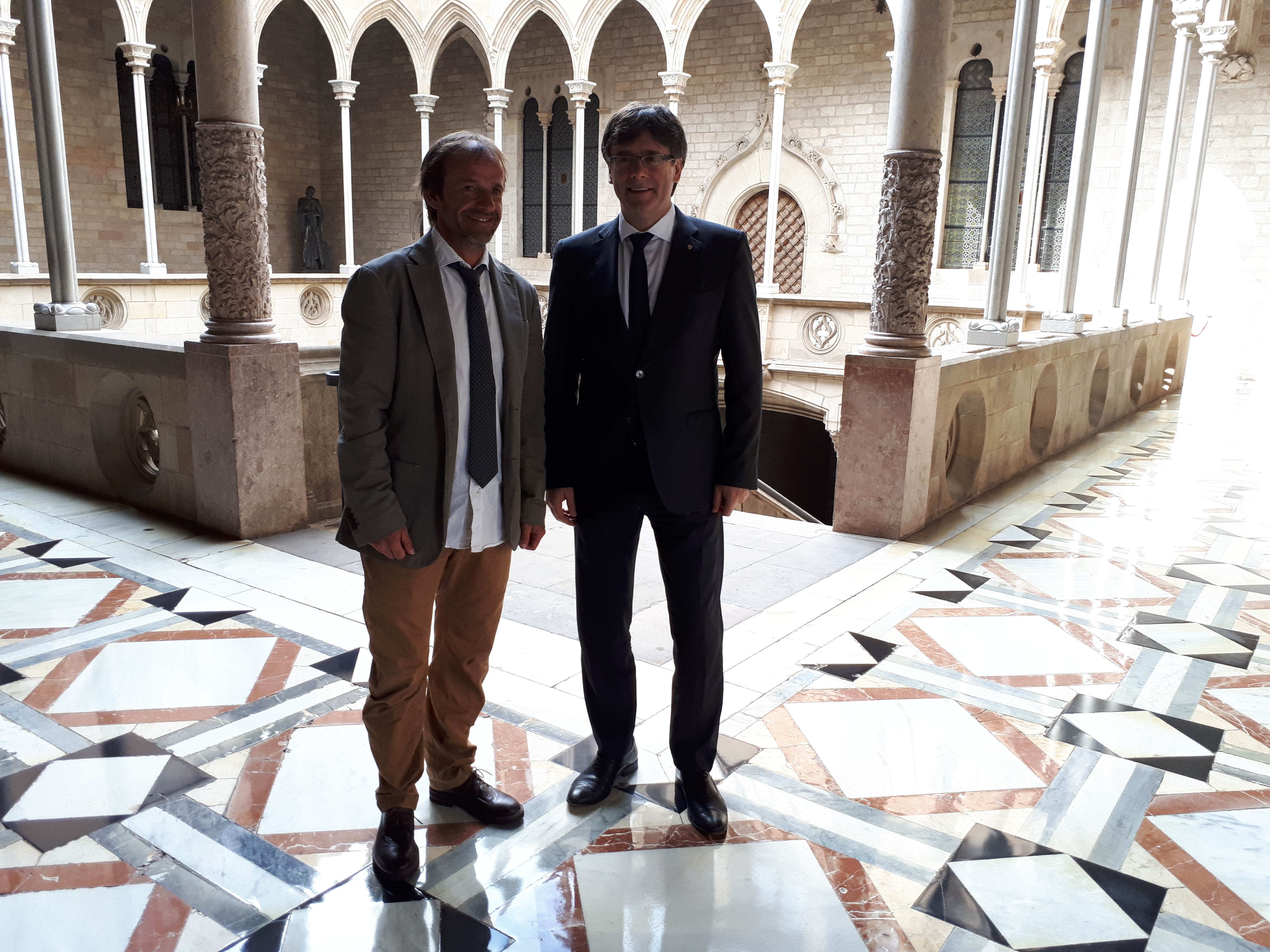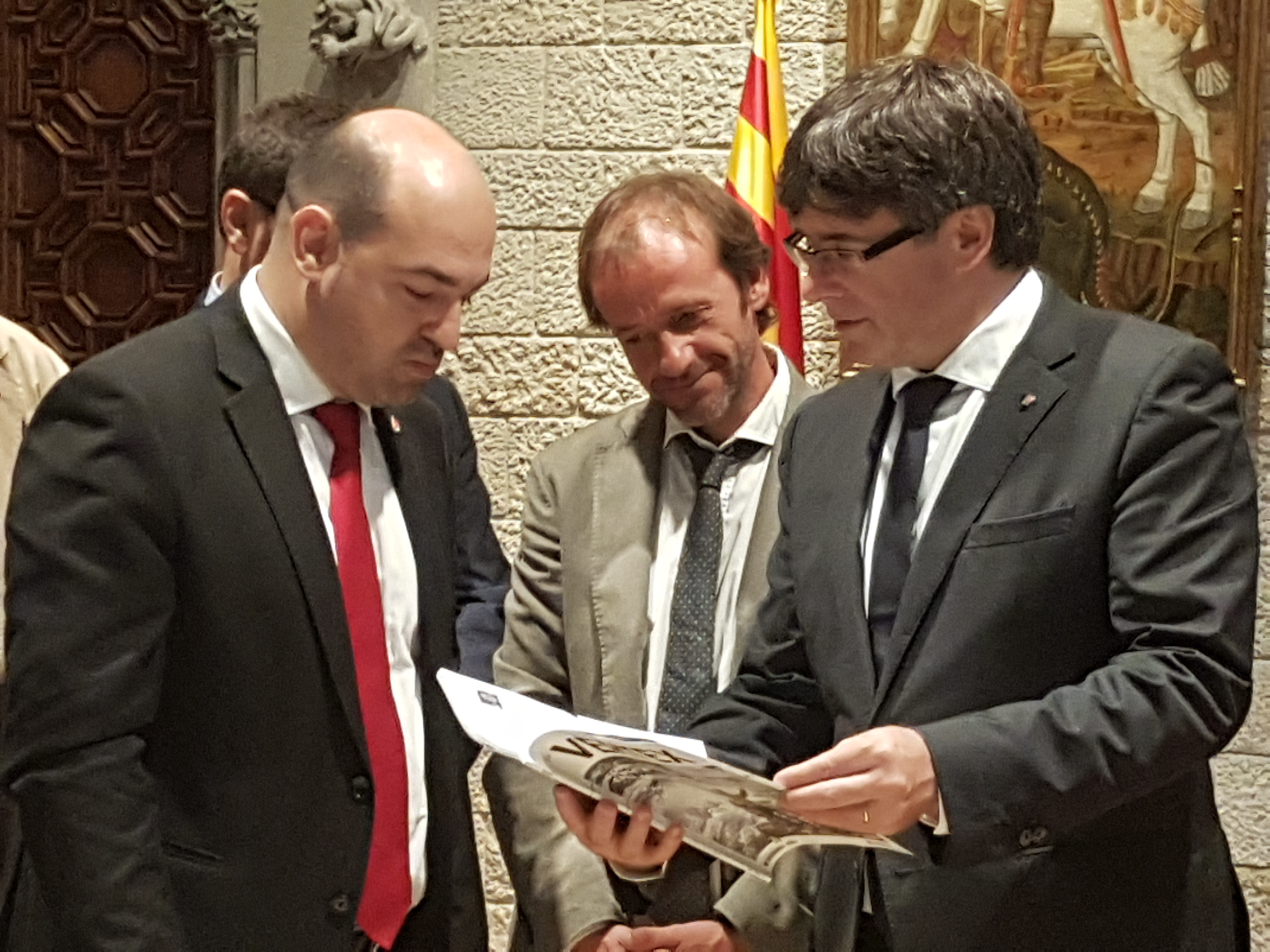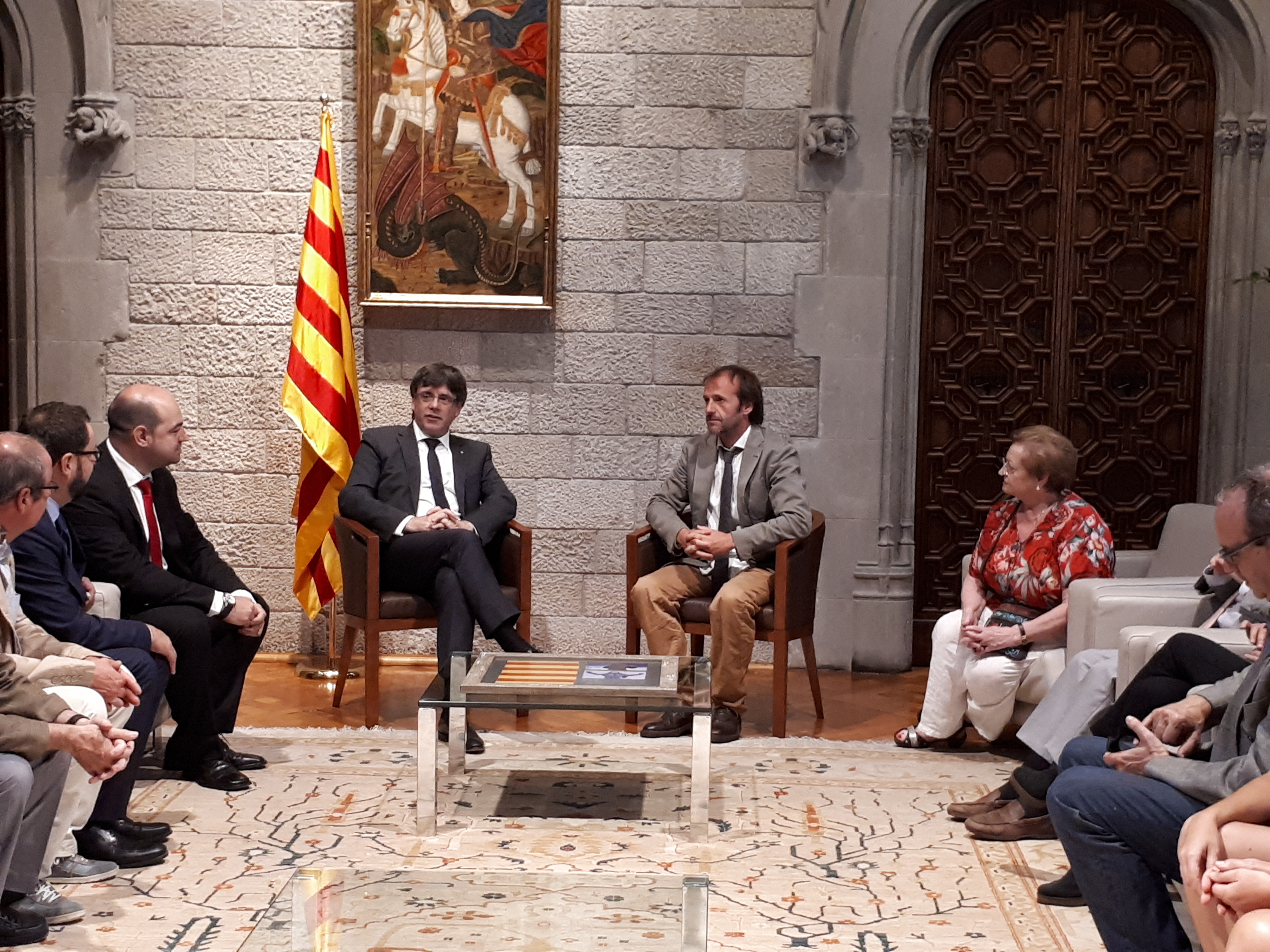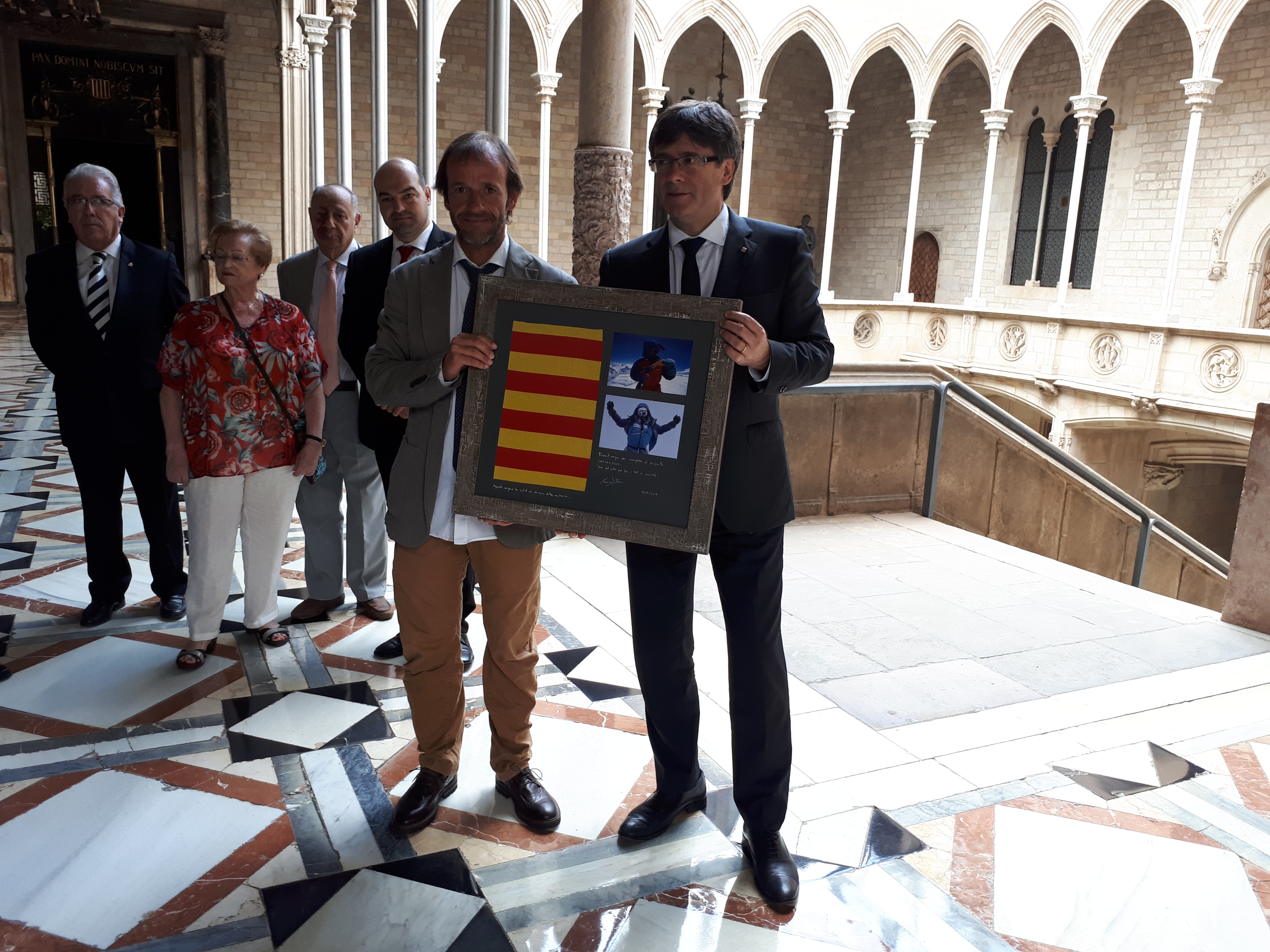 Latorre ha aprofitat la recepció oficial per agrair el suport rebut per part del Govern català i ha entregat al President Puigdemont, un quadre amb diferents fotografies i un tros de la senyera que ha portat als darrers vuit mils.