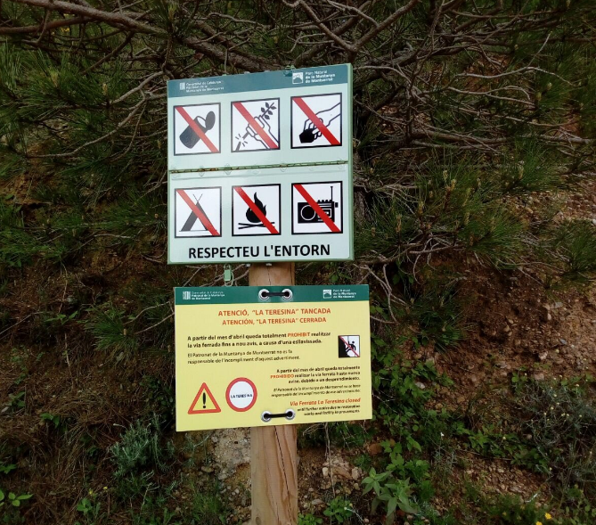 Els usuaris trobaran l’avís de tancament senyalitzat als cartells que s’han posat a les zones properes d’aparcament i d’accés a la via, a l’ermita de Santa Cecília. L’avís de tancament de la via ferrada s’ha senyalitzat amb cartells a les zones d’accés a aquesta. També se n’ha fet difusió a través de la xarxa socials del Parc Natural i de la FEEC.
