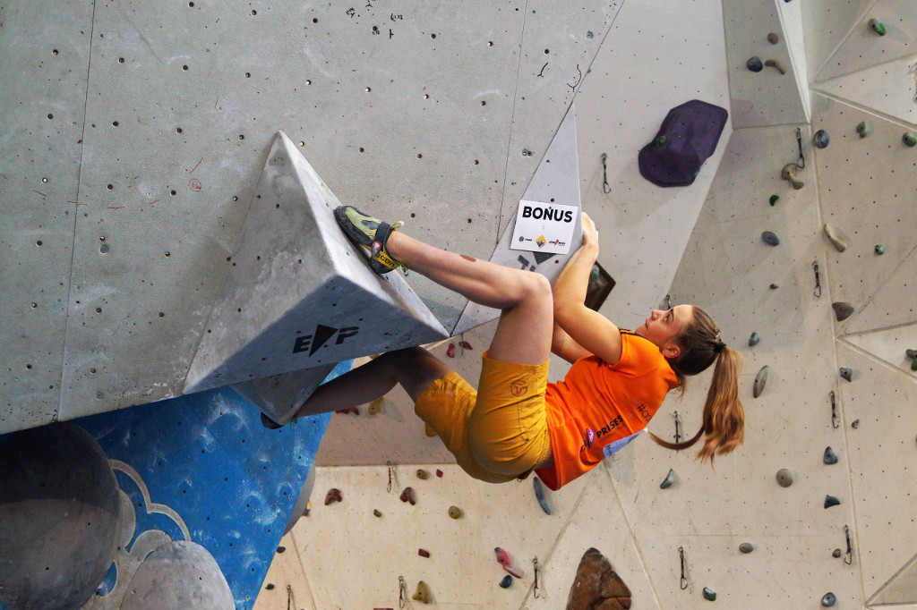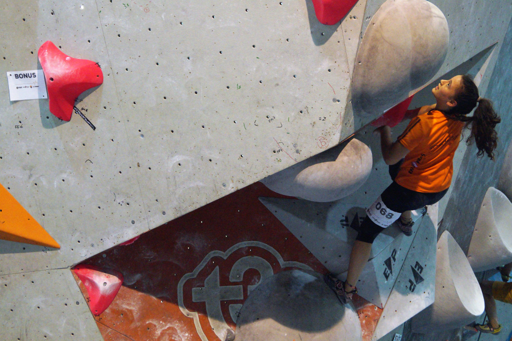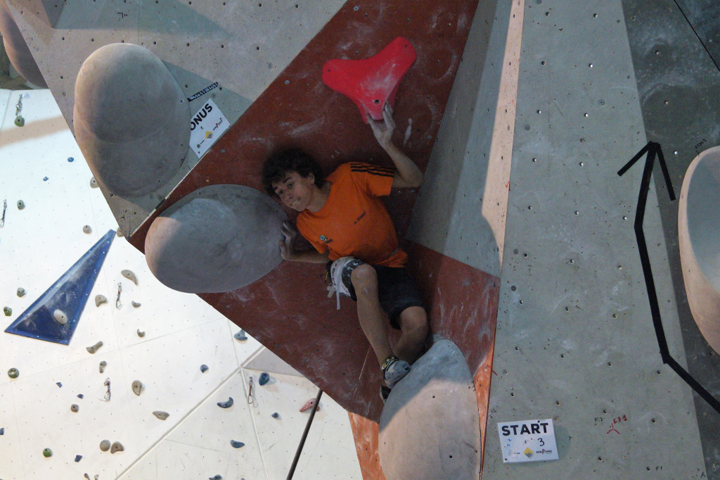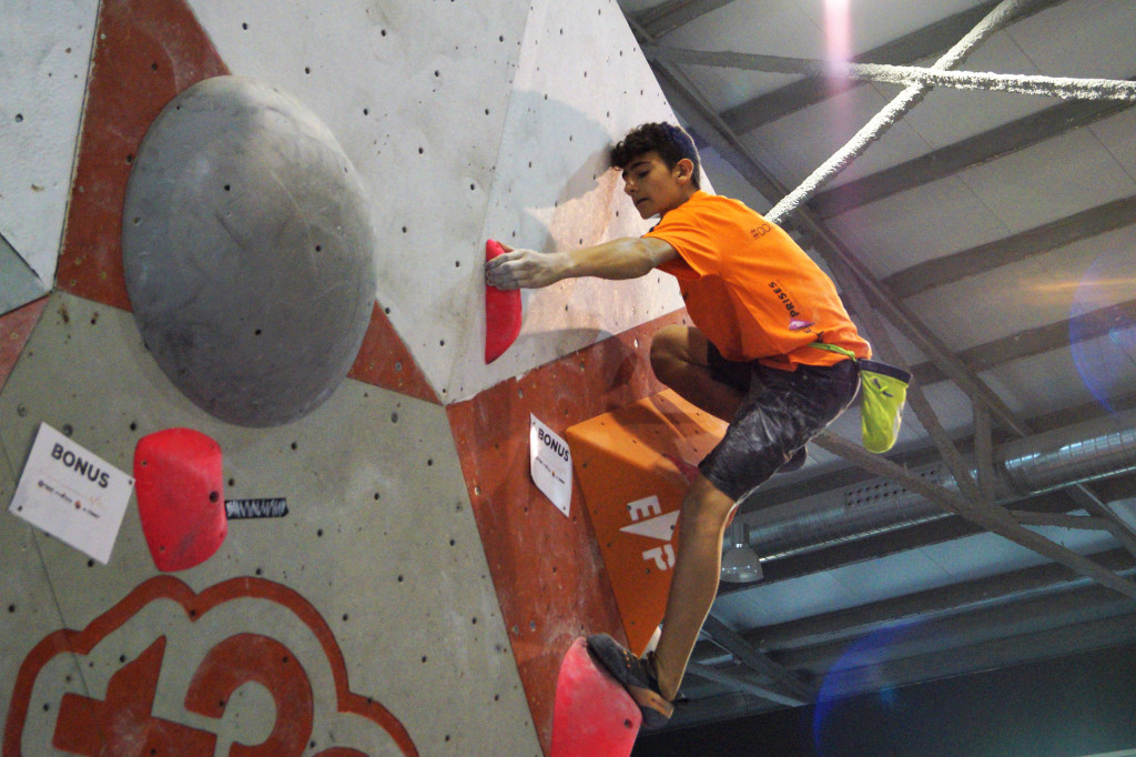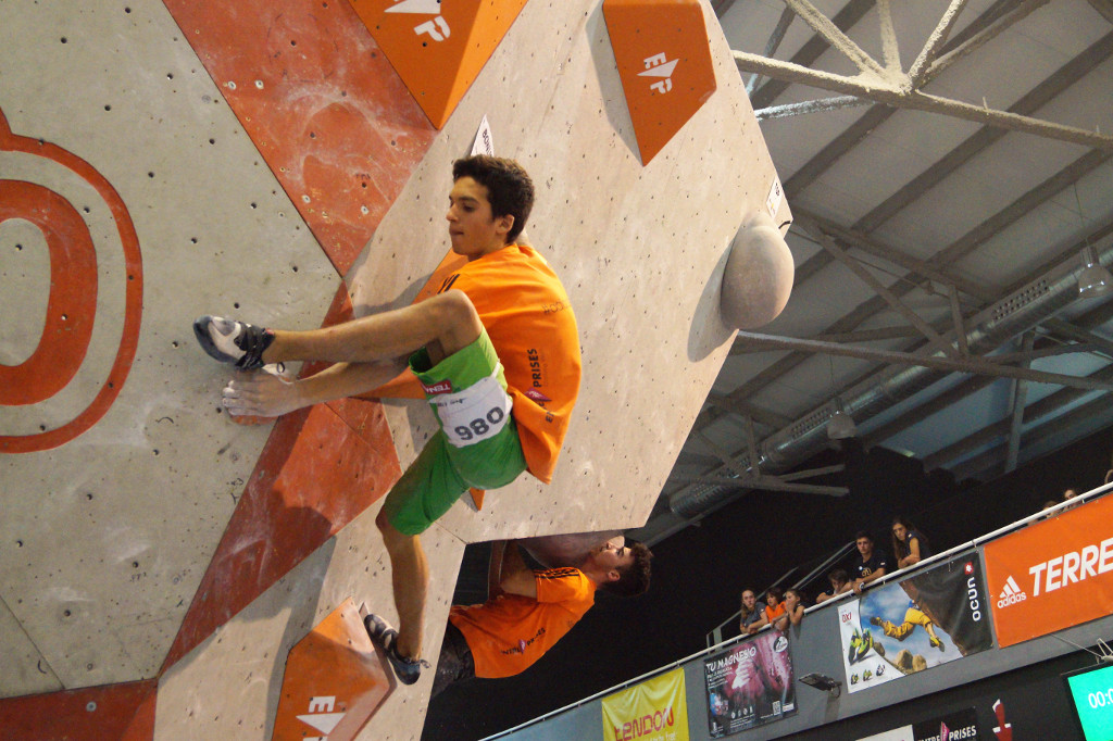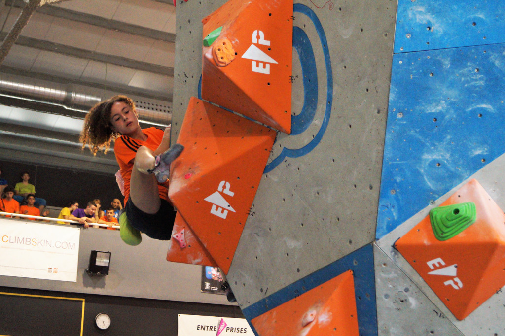 La fase eliminatòria ha començat ben d’hora ja que el campionat ha inclòs tres categories: sub 16, sub 18 i sub 20, tant masculina com femenina. Tots els participants s’han enfrontat a 5 blocs en la fase prèvia i han tingut 45 minuts per resoldre’ls. Els equipadors Gerard Rull, Helena Alemán, José Luis Palao i Diego Marsella han ofert una gran varietat d’estils en els problemes proposats. No ha faltat res: blocs físics, tècnics, de coordinació, …