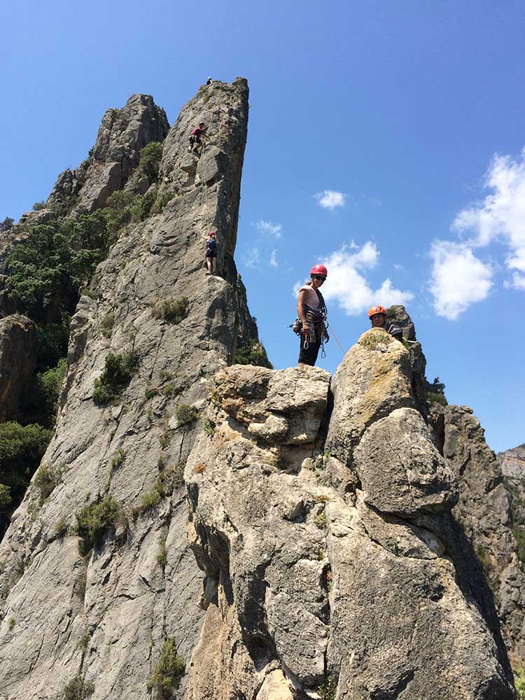Els nois i noies han realitzat una formació sobre tècnica de crestes, explicant els tipus i llargades de les cordes segons la cresta, el material mínim aconsellable, els encordaments, i diverses tècniques per despenjar, rapelar i assegurar. Degut al mal temps a Cavallers, els joves han realitzat la cresta Urquiza – Olmo (D, 6a, 600 m) al vessant aragonès de Mont-rebei.