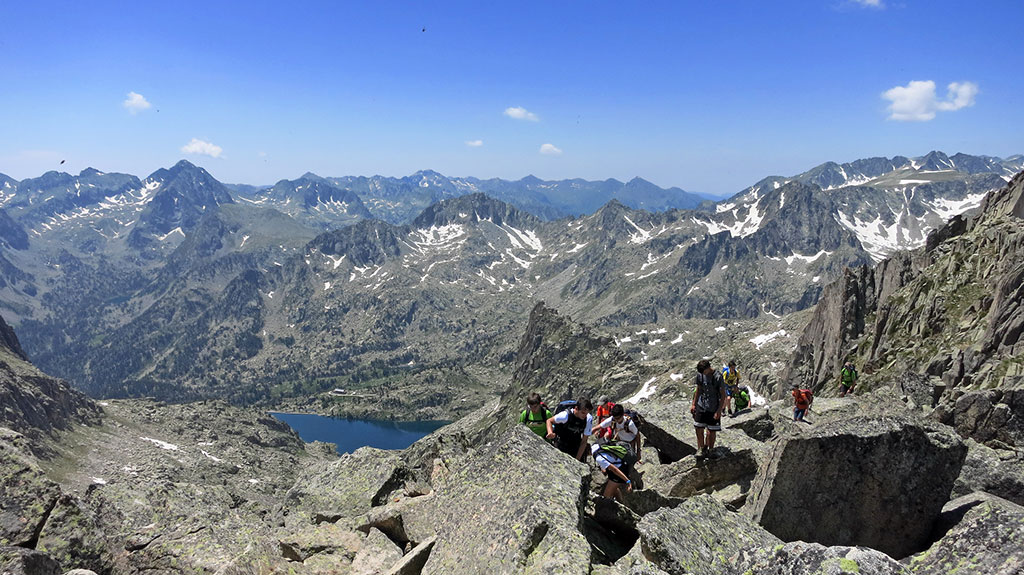 L’Àrea de Formació de la Federació d’Entitats Excursionistes de Catalunya (FEEC) ha portat a un grup de joves a la zona del Parc Nacional d’Aigüestortes i Estany de Sant Maurici, als Pirineus, per tal d’iniciar-los en l’alta muntanya estival i en l’escalada clàssica.