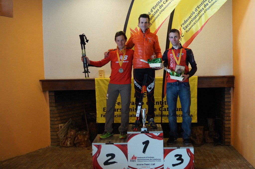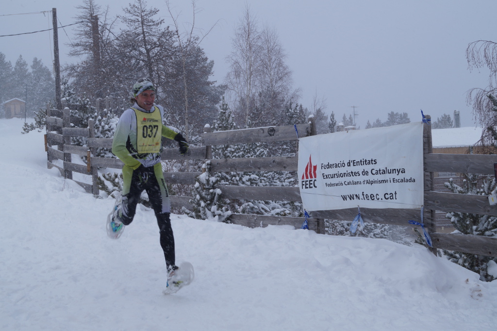 En categoria masculina absoluta, Jordi Uró (AE Mountain Runners del Berguedà), membre de la Selecció Catalana de Raquetes de Neu, s’ha proclamat campió de Catalunya. El bergadenc comenta que “ha sigut una cursa molt dura perquè hem trobat neu verge durant gran part del recorregut. A la primera pujada hem agafat distància un grup de cinc, però hem acabat agrupant-nos de nou. Després de la part dura, on ens hem ajuntat 7 o 8 corredors, ha arribat l’últim tram, a tres quilòmetres de meta. Primer una baixada i després tot pla fins a meta. Anava bé de forces a l’últim quilòmetre i he pogut passar al Just Sociats quan faltaven 500 metres per meta. En general, una cursa exigent. Totes les condicions que pots trobar-te a la muntanya s’han ajuntat avui”. Just Sociats (CE Terrassa) ha entrat a meta pocs segons després de Jordi Uró, i s’ha fet amb el subcampionat. El tercer classificat ha sigut Eduard Hernández (AE Matxacuca).