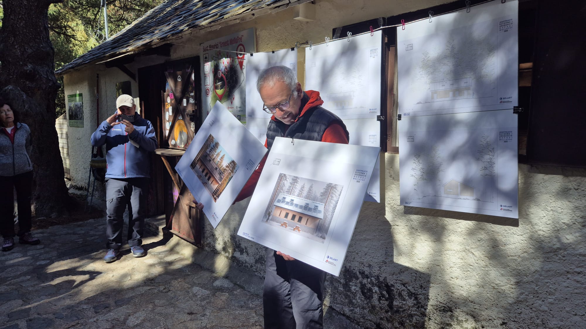 A continuació, l’arquitecte Francesc Belart va presentar l’avantprojecte de reforma i adequació del refugi. L’acte institucional va finalitzar amb els parlaments a càrrec de Lluís Florit, Carlos Guàrdia, Jordi Merino i Abel Garcia. A tots ells la Federació els va obsequiar amb un exemplar de la guia Catalunya. Excursions des de refugis de muntanya, coeditada per la FEEC i l’editorial Alpina. La jornada va acabar amb un dinar de germanor al mateix refugi, que esperem que pugui veure la seva renovació —absolutament necessària— en un futur pròxim. Amb aquest objectiu la Federació hi està treballant des de fa anys.