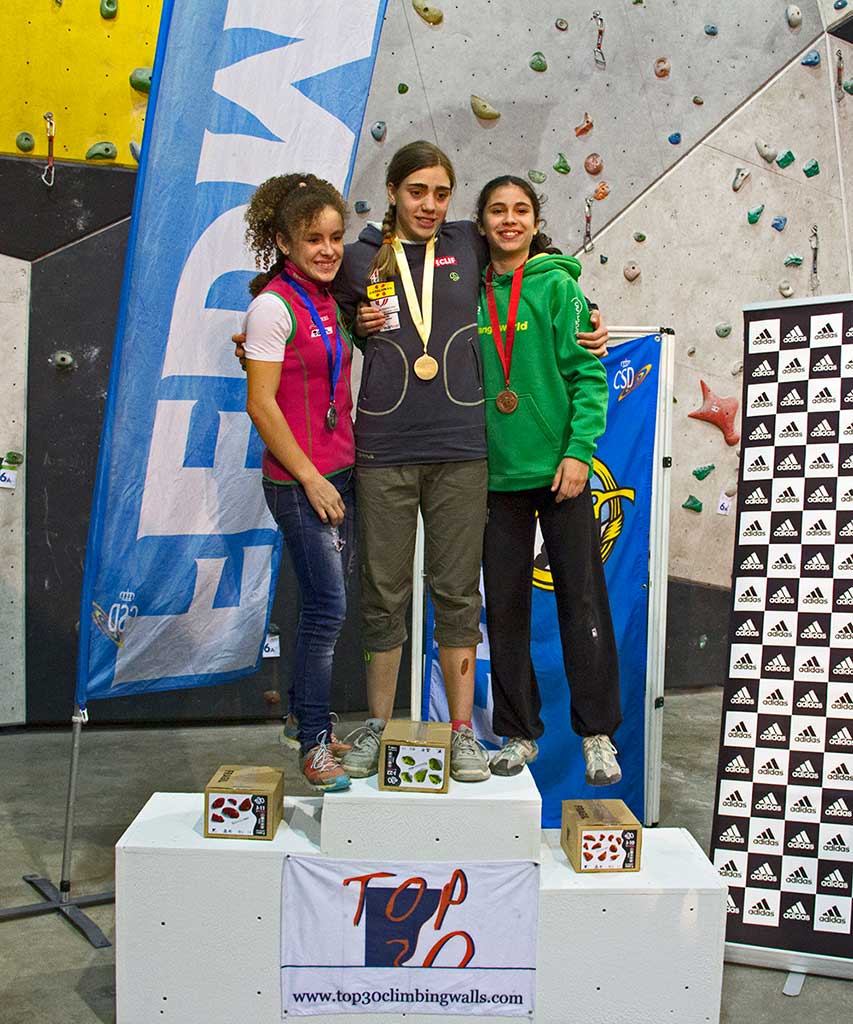 L’escaladora Marta Palou s’ha proclamat campiona en categoria sub20 fent podi amb la canària Sara Quiza i la basca Irati Musitu. En nois, el podi ha l’han format el valencià Jona Flor, l’extremeny Jerome González i el català Pau Jover.