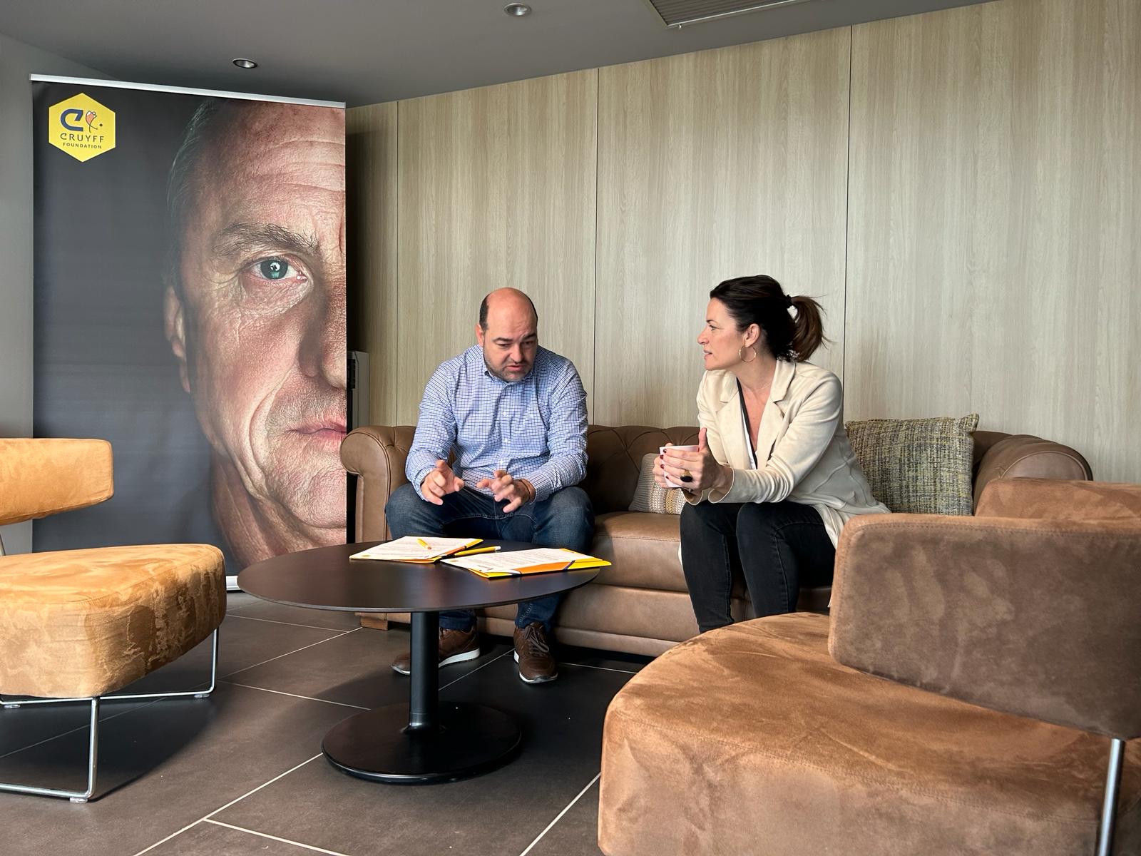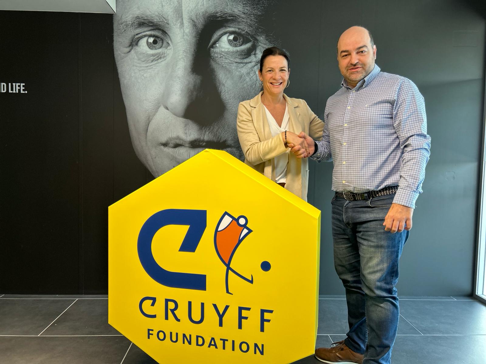 A l’acte de signatura hi han assistit el president de la FEEC, Jordi Merino i Urbano i la directora de la Fundació Cruyff, Pati Roura Gil acompanyats del cap de l’Àrea d’Inclusió de la FEEC, Albert Pendón i la coordinadora de projectes de la Fundació Cruyff, Laura Cebrián.