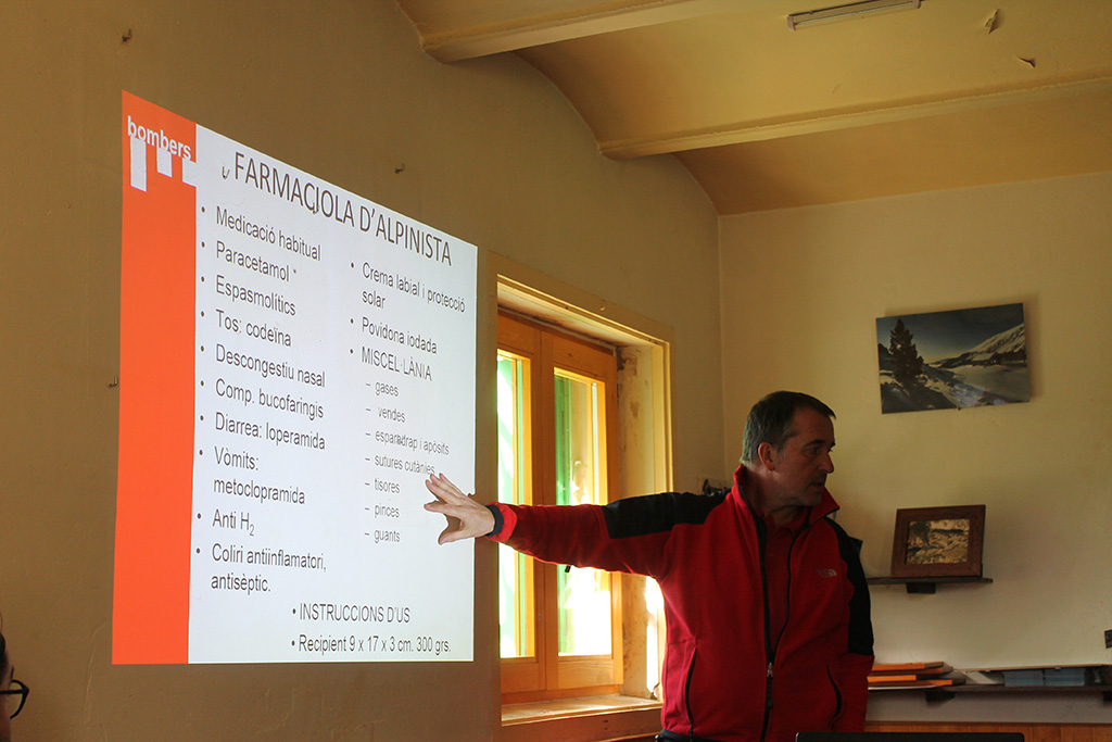 La jornada ha començat a primera hora del matí amb una explicació dels recursos operatius, la distribució i l’estructura dels Bombers de la Generalitat així com de les campanyes de prevenció i de consells de seguretat a la muntanya. El responsable de la Unitat del Grup d’Actuacions Especials (GRAE), Guillem Amorós, ha exposat quins són els recursos en cas d’emergència i els canals de difusió. A més, també s’ha presentat el Massive Open Online Course (MOOC) de Seguretat a les Activitats de Muntanya amb l’objectiu de conscienciar a la població de la seguretat a l’hora de fer activitats a la muntanya i conèixer la formació que realitzen diversos àmbits per tal que tothom que s’apropi a la muntanya ho faci amb seguretat i coresponsabilitat. Els Bombers de la Generalitat també han explicat com és la farmaciola tipus que han de tenir a l’abast els refugis de muntanya en cas d’accident.