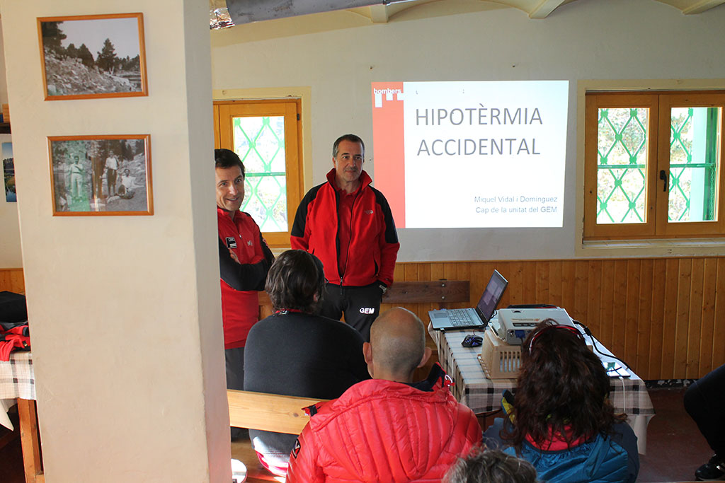 Tot seguit, el cap de la Unitat del Grup d’Emergències Mèdiques (GEM) dels Bombers de la Generalitat, Miquel Vidal, ha fet una exposició de com s’ha d’actuar en cas d’hipotèrmia en l’entorn de muntanya donant conceptes bàsics de prevenció, detecció i tractament del pacient hipotèrmic. Aquest any s’ha volgut fer especial èmfasi en aquest tipus de pacient.