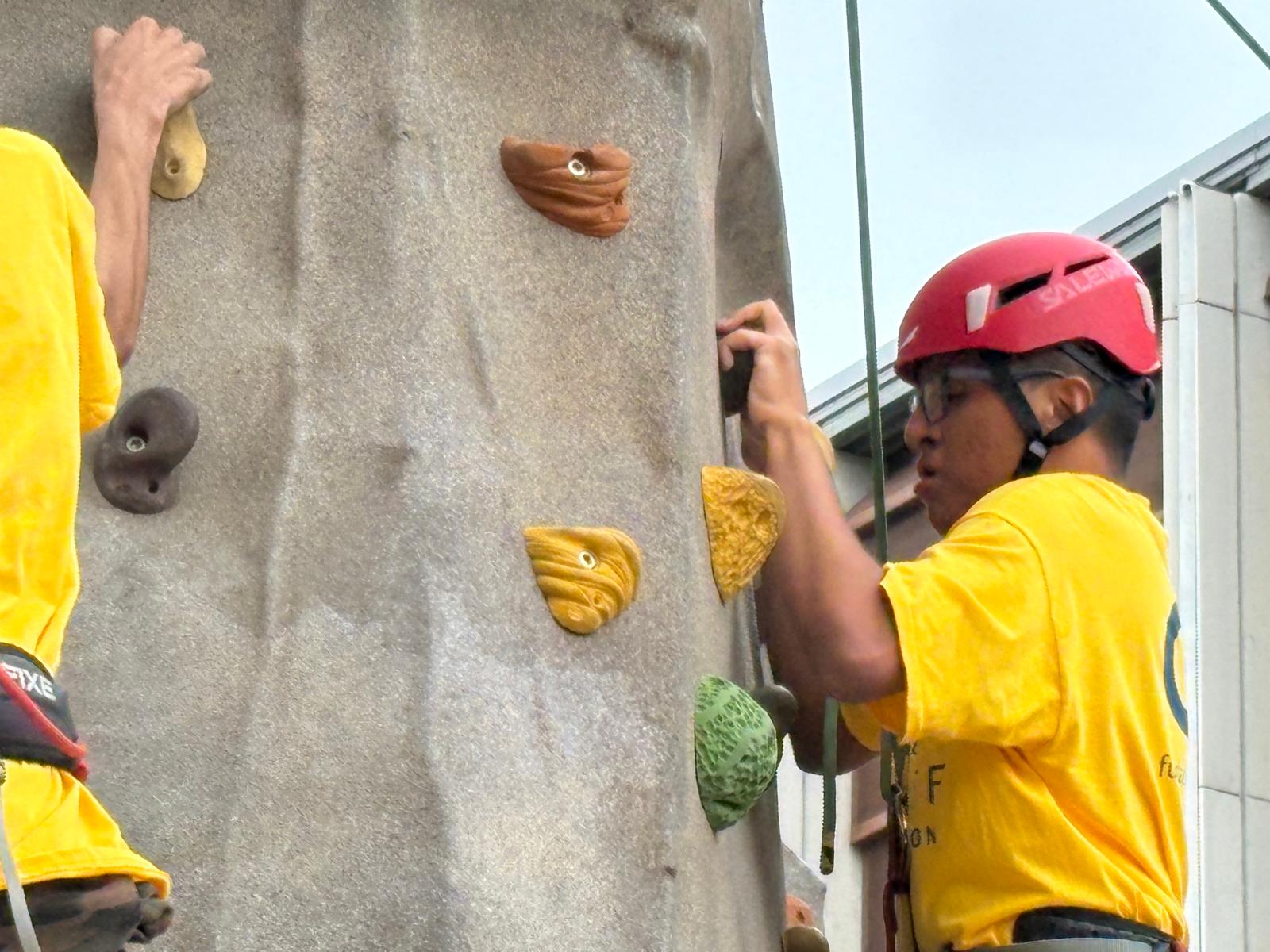 L’escalador de la selecció catalana de paraescalada, Miki Matutano, ha estat un dels tècnics que han ajudat els participants a iniciar-se en el món de l’escalada.