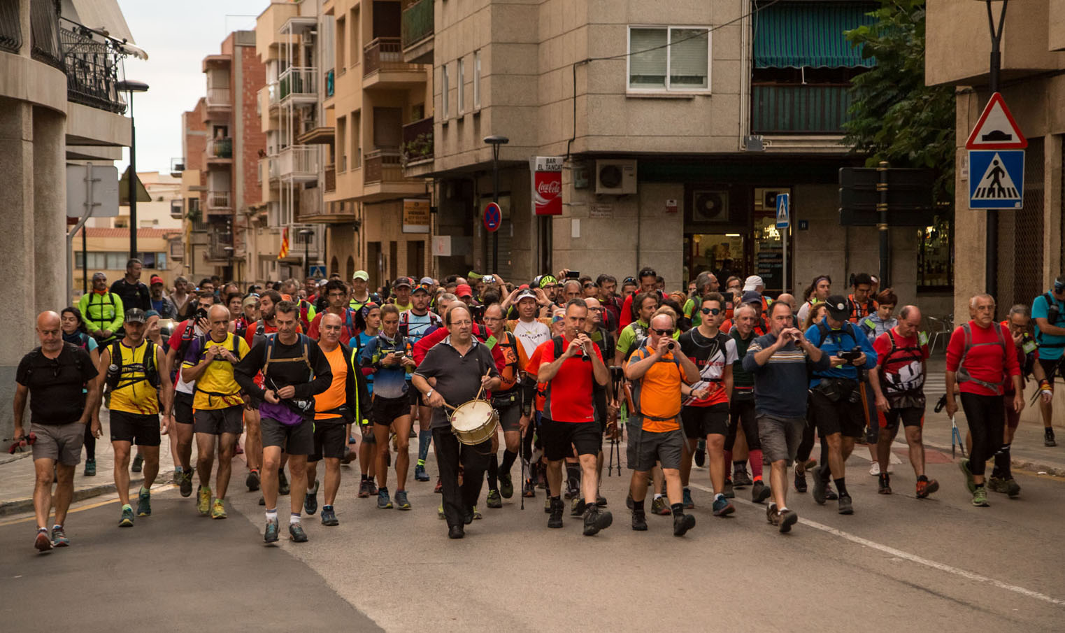 A partir de les 7 del matí començaven a congregar-se, al vestíbul de La Lira, els caminadors per afrontar aquesta dura marxa. A la sortida, neutralitzada fins al Torrent del Cullerer, encapçalava el grup de caminadors els Amics grallers del Vendrell, i a partir d’aquí els caminaires tenien 15 hores per completar el recorregut.