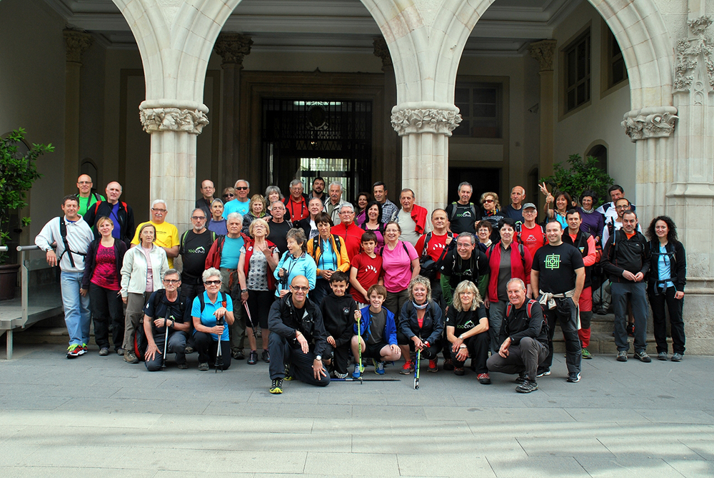 Després d’aquest acte de benvinguda els 60 participants van enfilar-se a l’autocar que els va dur al coll d’en Tropes i a la Casa Nova de l’Obac. Allà es van fer dos grups. Un grup va fer un recorregut més curt pels pous de glaç, i l’altre es va enfilar fins a Castellsapera, punt culminant del terme municipal de Terrassa i que forma part del llistat dels “100 Cims”. El dia era força núvol i calitjós i les panoràmiques des del cim no van ser gaire àmplies; això sí, la presència de Montserrat, atreia la mirada.