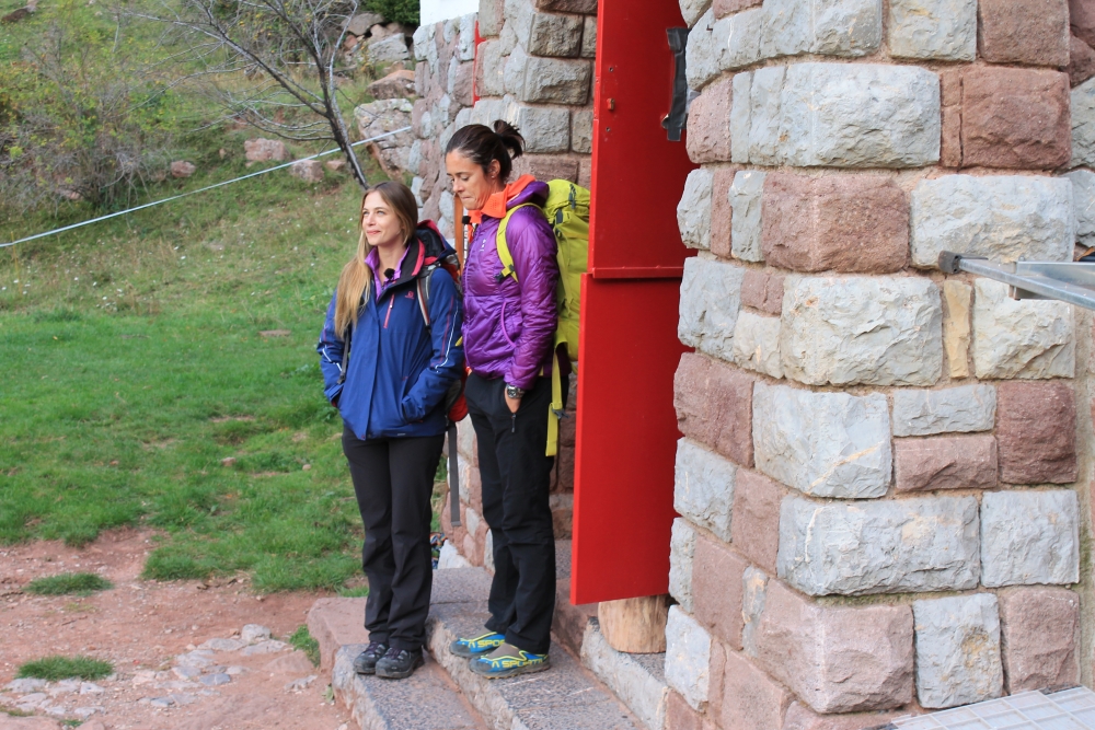 Edurne Pasaban i Martina Klein, acompanyades per la resta de l’equip de Cumbres, han dormit al refugi Sant Jordi, on hi van accedir a través del sender de petit recorregut PR-C 125, una preciosa excursió que discorre pels Empedrats, l’antic camí ral de la Cerdanya, resseguint l’espectacular i encaixonada vall del riu Pendís.