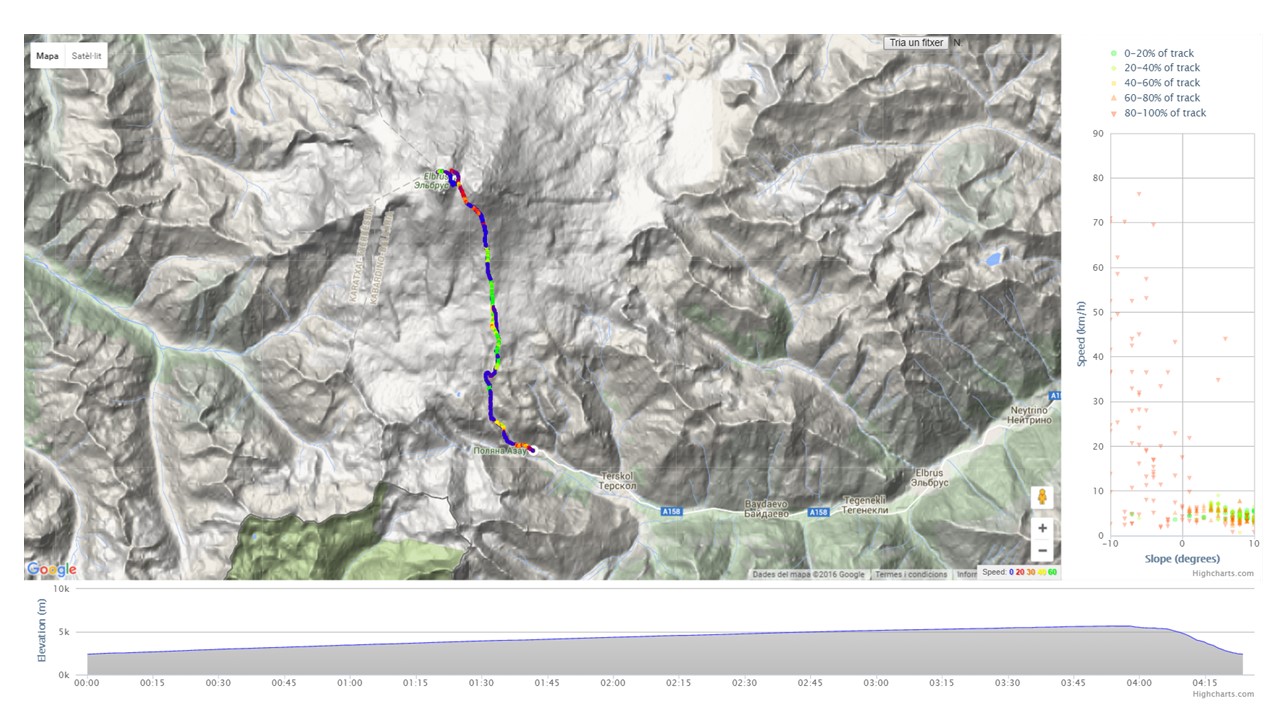 A partir d’ara, els esquiadors de muntanya de tot el món compten amb un nou repte. Baixar de les 4 hores 23 minuts i 48 segons establerts per el català Marc Solà, ascendint i descendint el gran gegant europeu, l’Elbrús.