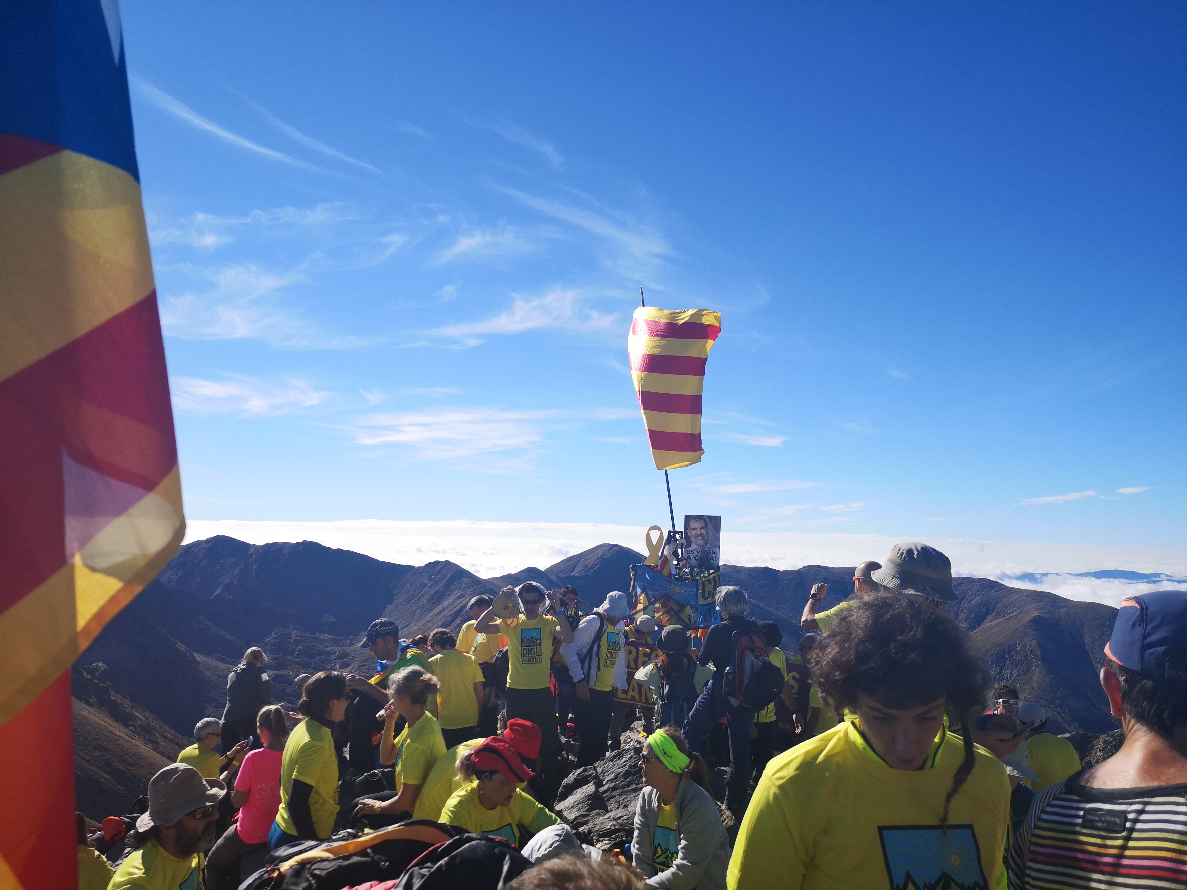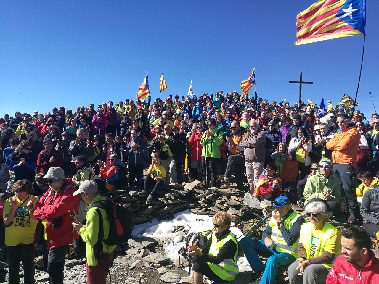 Dia històric per l’excursionisme català. Més de 16.000 persones han pujat a diferents cims del país on ha reclamat la llibertat dels presos, exiliats i represaliats.