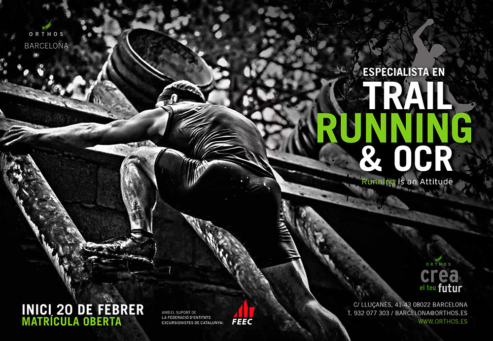 L’escola Orthos ofereix una nova edició del curs “Expert en Trail Running i OCR” amb el suport de la Federació d’Entitats Excursionistes de Catalunya (FEEC). Aquest és un curs de llarga durada, amb 110 hores de formació, s’inicia el proper 20 de febrer. El curs es realitza presencialment, amb clases a l’aula, la muntanya i en pistes professionals d’obstacles. Els federats tenen prioritat i un descompte en la realització d’aquest curs gràcies a l’acord de col·laboració establert entre la FEEC i Orthos.