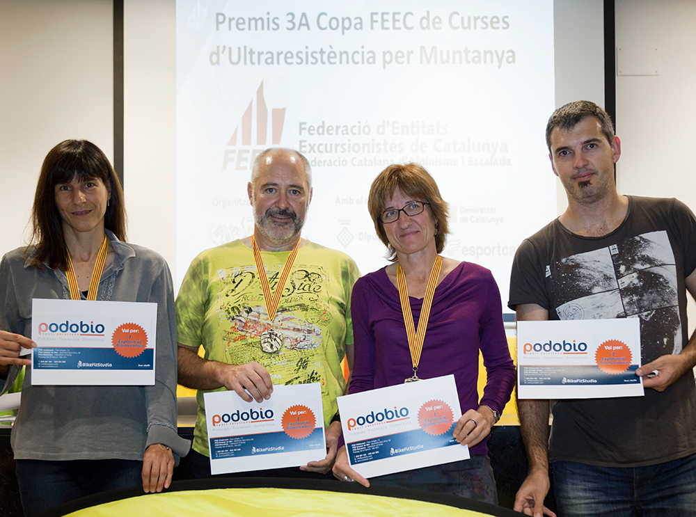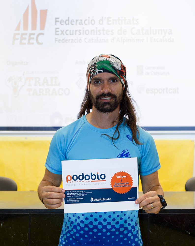 La jornada va començar amb una projecció comentada per Marc Fernàndez Ciurana, del Centre Excursionista Serres del Mestral, sobre la Volta a Catalunya que ha realitzat en 15 dies al llarg de 1.200 quilòmetres per GR i PR. A continuació, i després de fer el lliurament dels trofeus per categories, es van entregar vals de Podobio Sport Solutions als guanyadors masculins i femenins de les proves.