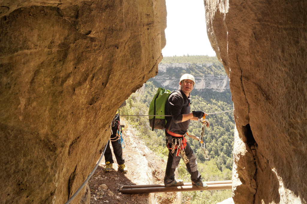 La ferrada situada a l’entorn de les Muntanyes de Prades té un recorregut de 480 metres, amb 90 metres de desnivell, i una dificultat de K4 (difícil). L’aproximació es realitza en uns 15 minuts i el recorregut de la via es cobreix entre 2 i 3 hores. La via conté molts trams verticals, combinats amb algun pas desplomat i aeri. També es superen quatre ponts tibetans, el més llarg de 28 metres. A banda del material bàsic obligatori per a la pràctica de vies ferrades és necessari portar una corda de 40 metres per realitzar dos ràpels, de 20 i 10 metres.