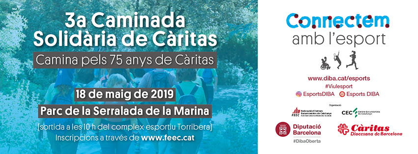 Recaptar fons pel programa d’inserció laboral “Feina amb cor”. Aquest és l’objectiu de la 3a Caminada Solidària de Càritas, organitzada per la FEEC, el Centre Excursionista de Catalunya i Càritas en el marc del seu 75è aniversari. La iniciativa solidària, que se celebrarà el dissabte 18 de maig, compta amb la col·laboració de la Diputació de Barcelona i vol aprofitar l’esdeveniment esportiu per mostrar suport i solidaritat amb les persones més necessitades. Des de l’inici del programa el 2013, moltes persones han aconseguit trobar feina. I és que encara que no hi creguis… tots tenim un àngel.
