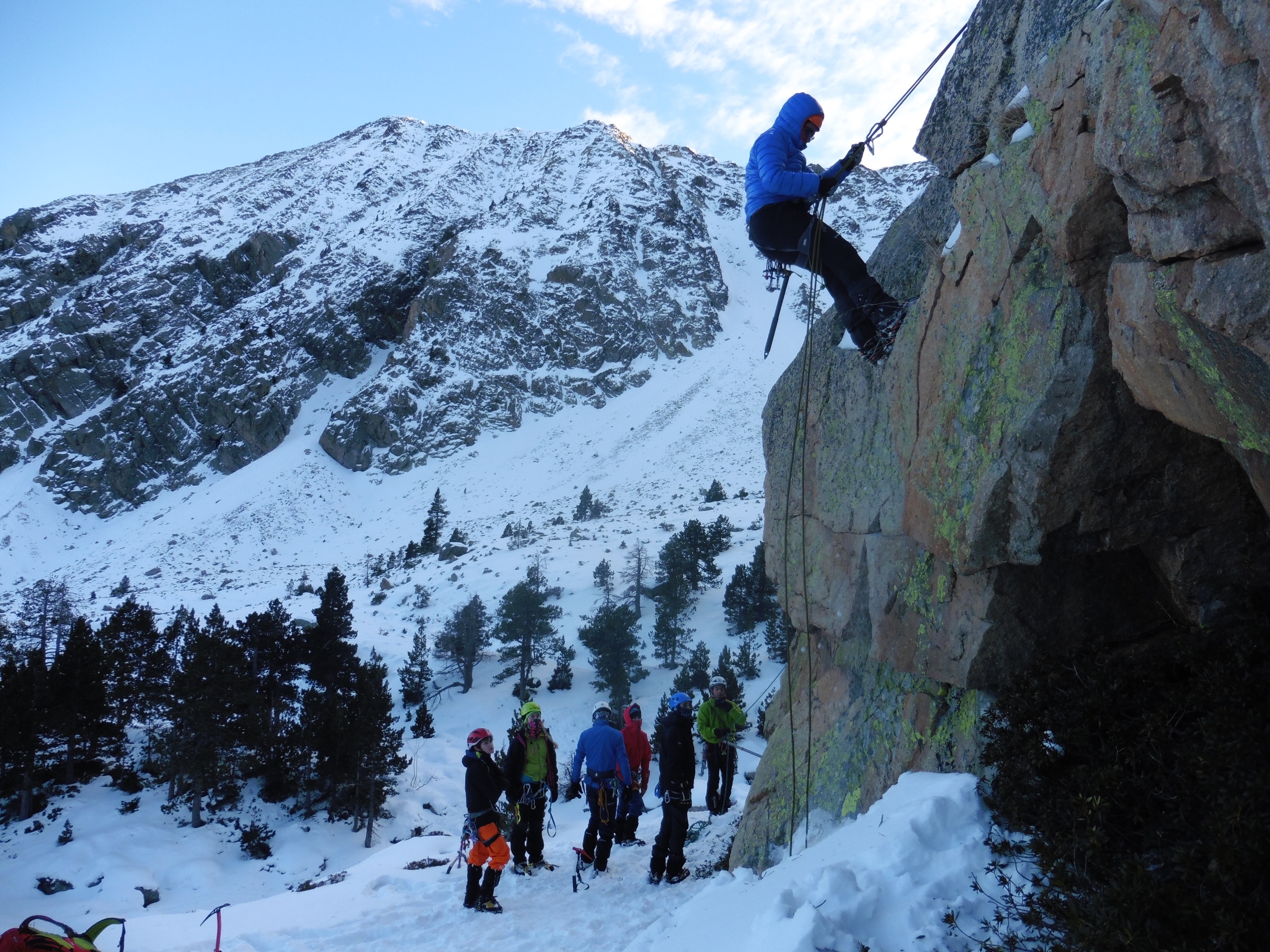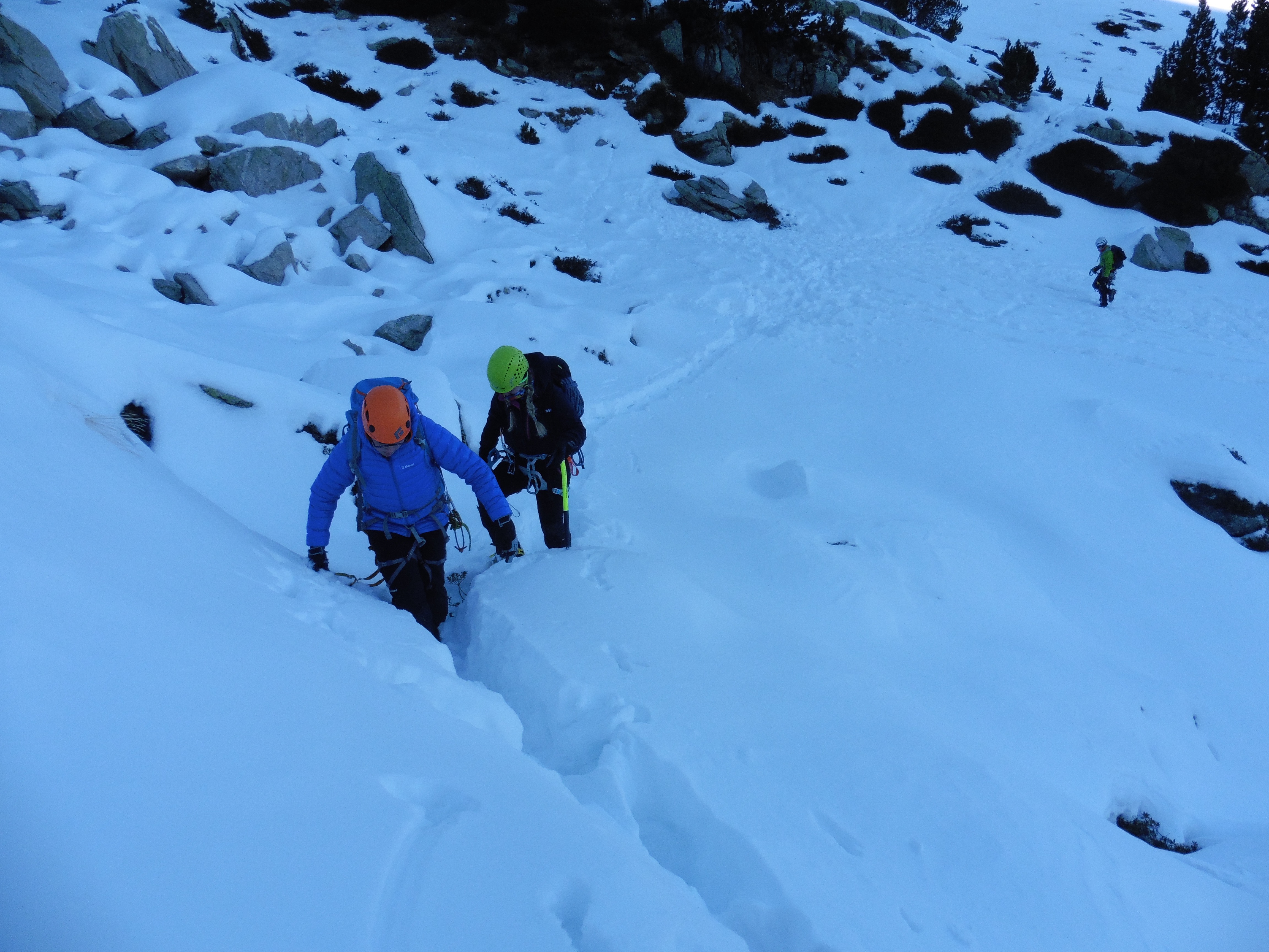 Amb unes condicions més que acceptables i amb unes ganes desbordants per part dels participants, en la darrera jornada es va realitzar una activitat completa ascendint dues canals de dificultat al Gra de Fajol Petit, com són la directa o del diedre, i la clàssica canal estreta.