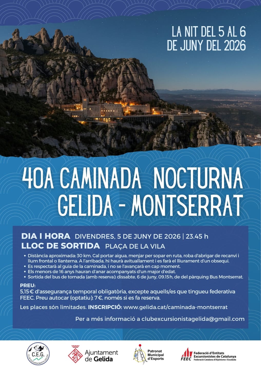 La 40a Nocturna Gelida-Montserrat compta amb 28 km i un desnivell de 1.041 m.